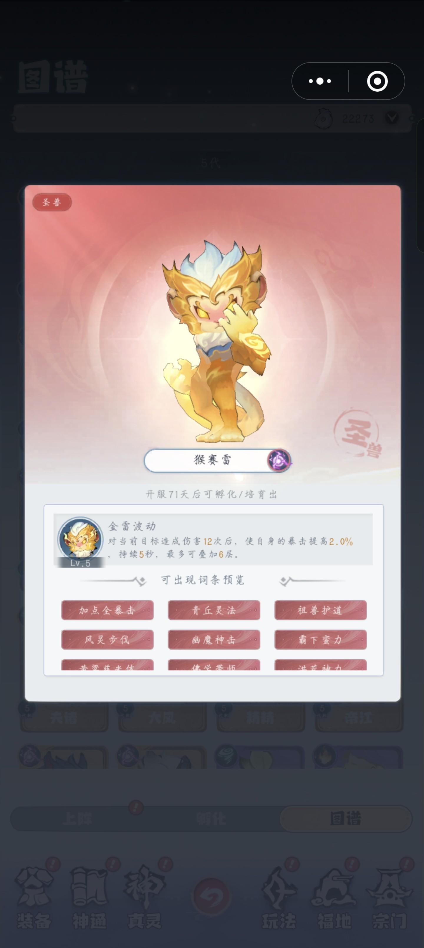 同时这边由于新增的火系异兽与嘲风类似,可以尝试一下2风+2火的搭配。