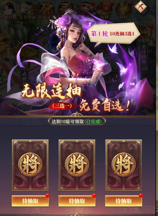 7、等级礼包:完成任务三国武将自选等大量豪礼,助您快人一步