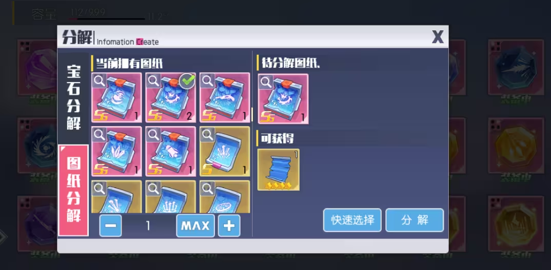 宝石/图纸分解功能:在背包里的宝石界面里进行分解操作,换取对应材料
