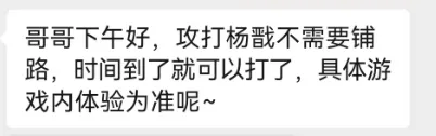 2、根据游戏客服的回复是:杨戬不需要铺路,具体看下图。