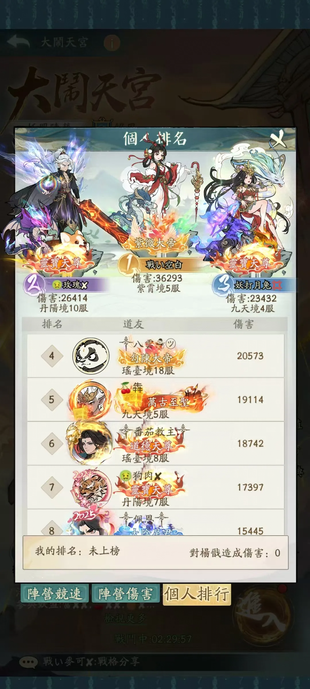杨戬个人输出榜氪佬占优势,buff吃满的但是外面面板低很多很多的不一定对面氪佬输出低。