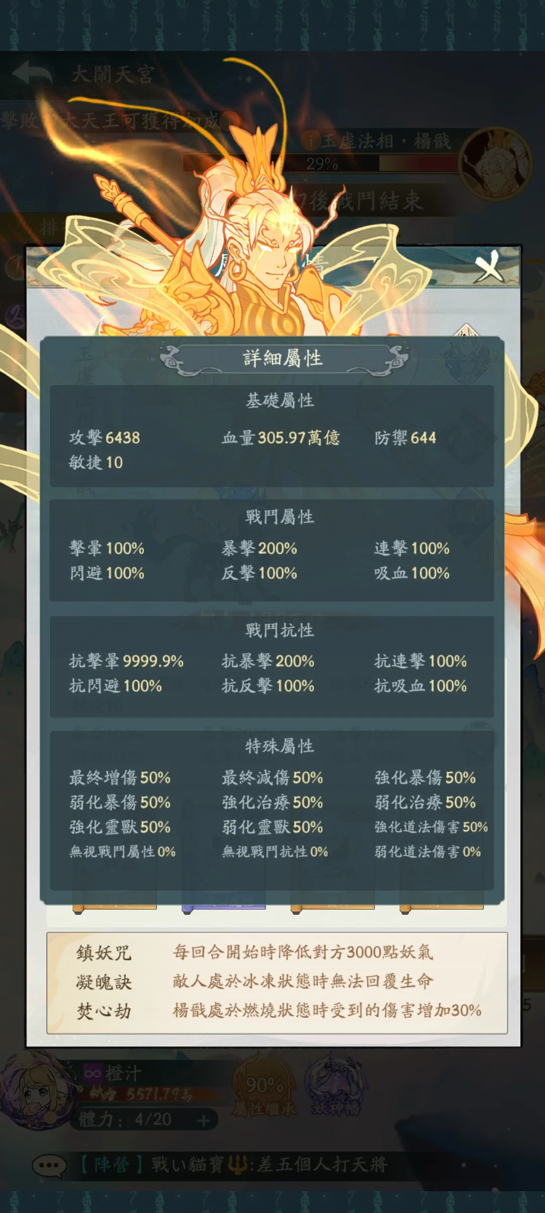 俩个boss都是抗晕9999,也就是说二阶段的形态天王还是杨戬都可以用连暴反来达到输出极致。